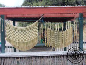 Zwei Frauen stellten im hinteren Bereich des Shops die Poi´s her und verpackten andere Souvenirs. Vivi stellte ein paar Fragen zur Herstellung. Manche Maori´s (Frauen) tragen Federmäntel („Kanu-huruhuru“), welche z.B. teilweise auch aus Kiwi-Federn bestehen und bis zu einem Jahr Herstellungszeit benötigen. Die Röcke („Piupiu“) und andere ähnlich hergestellte Kleidungsstücke werden aus Bambus gemacht und brauchen zwischen einer Woche bis zu einem Monat, je nachdem wie aufwendig es ist. Die Kleidung wird gewebt und Grundlage ist eigentlich immer Bambus (-garn). Dazu zeigte die Frau Vivi auch ein Teil von einem „Piupiu“, welches sie dann auch mitnehmen durfte. Was ein besonderes Souvenir! 🙂