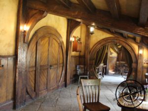 Von Bilbos Zuhause ging es dann vorbei am bekannten „Party Field“ (wo z.B. Bilbos Geburstag gefeiert wurde) zum „Grünen Drachen“. Dies ist für Fans ebenfalls nicht unbekannt und einige Szenen wurden dort gedreht. Auf dem Movie Set ist es ebenfalls komplett erhalten worden und dient nun für die Touren oder private Buchungen.