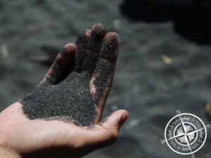 Nach dieser guten Stärkung und einem Kaffee ging es wieder zum „Coastal Walk“. Von dort liefen wir bis zum Strandabschnitt „East End“. Der Strand ist hier nicht wie ein üblicher Strand, denn der Sand ist hier schwarz. Das war schon interessant und echt ganz anders. Muscheln gabs hier keine, aber der Sand ist ganz fein und weich, wird aber natürlich noch schneller heiß, als normaler Sand (also Achtung! ;)). Nachdem wir die Meerluft und den schwarzen Sand in vollen Zügen genossen haben, gingen wir den „Te Henui Walkway“.