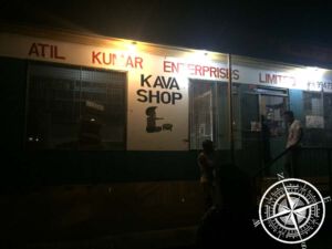 Wir waren super satt! Kathleen entschied sich spontan für uns Kava anzubieten und dies benötigte erst einen kleinen Spaziergang. Der Regen hatte zum Glück aufgehört und wir machten uns auf in die Dunkelheit. Erst ging es zu einem kleinen Kava-Shop, wo wir Snacks für den Kava kauften. Dann ging es zu einem Haus, wo Kathleen dann das Kava-Pulver kaufte. Kava besteht aus einer Wurzel, wird dann gemahlen und dann (oft) privat verkauft. Zuhause rührt man dann den Kava mit Wasser selbst an, was dann Kathleens Mann Bola übernahm. Aufgrund eines Ereignisses gibt es aktuell nicht so viel Kava und daher ist er recht teuer.
