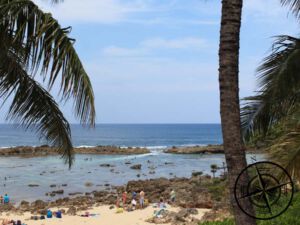 Im Auto hatten wir auch unsere Schnorchelsachen dabei und wollten eigentlich auch noch ins Wasser. Bei den hohen Wellen bietet es sich allerdings nicht gerade an. Wer sich aber im Surfen üben möchte und ein Board dabei hat, dem können wir den „Sunset Beach“ empfehlen. Wir haben hier übrigens auch noch ein Foto mit einer 100 Jahre alten Palme gemacht. 😀