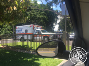 Auf der Hinfahrt waren wir auf das Schild des „Wahiawa Botanical Garden“ aufmerksam geworden. So machten wir uns auf den Weg dort hin. Unser Navi ist nicht so das Beste und, wie schon bei anderen Zielen, fuhren wir auch diesmal, trotz korrekter Eingabe, vorbei. Wir drehten um, doch als wir dort ankamen, konnten wir nicht auf den Parkplatz fahren, da ein Polizeiwagen die Zufahrt versperrte. So fuhren wir langsam vorbei und auf dem Parkplatz waren noch mehr Polizeiautos und auf der Brücke standen Polizisten und wir sahen einen Mann außerhalb der Brücke stehen, der von einem Soldaten festgehalten wurde.