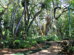 Der botanische Garten ist nicht sonderlich groß. Es gibt einige nummerierte Bäume, wozu es noch weitere Infos gibt, aber ansonsten war ein Weg gesperrt und es war recht trocken, sodass es auch den Wasserfall nicht gab.
