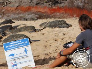 Im Kontakt mit den Mitarbeitern von „Hawaii Wildlife Fund“ haben wir uns entschlossen, dem Team mit den „Hono“ (hawaiianisch für die „Green“ Schildkröte) zu helfen.