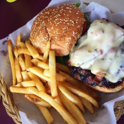 Wir schlenderten die Straße entlang, schauten uns ein paar Geschäfte an, kauften Postkarten und entschlossen uns dann dort das Mittagessen im „Cheeseburger in Paradies“ genießen zu lassen. Das „Cheeseburger“ ist in Hawaii weitverbreitet und hat viele Restaurants, die dann je nach Lokation einen bestimmten Namenszusatz hat.