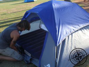 Der Platz war ausgesucht und das Zelt wurde aufgebaut. Dann kamen schon die Ranger – recht früh, denn gewöhnlich kommen die meistens erst später. Die machten uns dann aufmerksam, dass wir (so wie auch einige andere) das Zelt in einem anderen Bereich aufbauen müssen. Es war dafür keine Kennzeichnung, aber so packten wir das Zelt und suchten einen neuen Platz. Das war dann gar nicht so einfach, denn es gab nur wenige Stellen, wo sich auch die Heringe in den Boden bringen ließen. Aber irgendwann war das dann auch geschafft und mit vielen Nachbarn ringsum stand das Zelt nun.