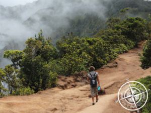 Dann ging es für uns etwas weiter zum „Pu´u O Kila Lookout“. Die Straßen sind allgemein recht kurvig, aber sehr gut ausgebaut, sodass man das mit jedem Auto machen kann. 😉 An diesem Aussichtspunkt gab es nicht sehr viel Aussicht, da auch hier das meiste in den Wolken verschwand. Hier entschieden wir uns den „Pihea Trail“ zu gehen. Der Weg an sich ist schon ein Abenteuer und man sieht, wie Wassermengen den Weg formten. Während auf der linken Seite alles in Wolken war, gab es Rechts reichlich grün und der Weg war eine Wahl! Da es trocken war, gab es nur wenige matschige Stellen und der Trail war gut zu gehen. Leider gab es dann aber beim „Pihea Lookout“ auch nicht allzu viel zu sehen, außer dem Anfangspunkt. Von hier aus führt ein anderer Trail noch weiter, aber wir entschlossen hier wieder zurück zu gehen.