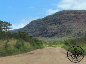Unser Plan war eigentlich zum „Polihale State Park“ zu fahren und uns dort den Strand anzusehen. So sind wir den Schildern gefolgt, bis wir dann auf einer ungeteerten Straße landeten. Torben meinte, dass es kein Problem sei und so machten wir den Weg über die Steine und Torben meisterte es ganz gut, die Schlaglöcher zu umfahren. Doch der Weg schien endlos und es wurde immer holpriger, sodass wir uns dann irgendwann entschieden umzudrehen.