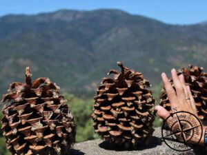 Kurz bevor wir zurück in die Stadt fuhren, hielten wir noch an einer Parkbucht an. Hier hat man nochmal einen tollen Ausblick auf den Damm und den See. Dort fanden wir noch drei riesige Tanenzapfen auf der Mauer liegen, die natürlich fotografiert werden mussten. 😀
