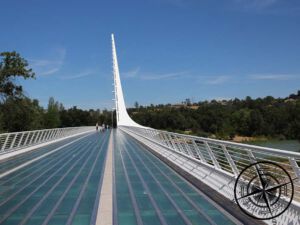 Für uns ging es dann wieder zurück in die Stadt und wir parkten das Auto beim „Turtle Bay Museum„. Dort gönnten wir uns erstmal einen erfrischenden Smoothie und kauften ein paar Postkarten im Shop. Das „Turtle Bay Museum“ und die Area haben wir uns nicht weiter angesehen, da wir geplant hatten den „Sacramento River Trail“ zu gehen. An dem Museum befindet sich direkt die „Sundail Bridge„, welche Abends/Nachts toll beleuchtet ist.