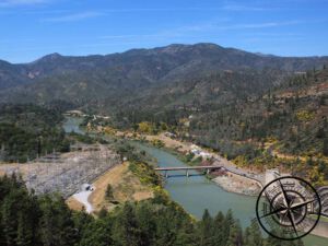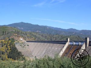 Als wir dann also gut mit einem Frühstück gestärkt waren, machten wir uns auf. Diesmal bepackt mit einem Moskito-Spray, denn der gestrige Tag am „Whiskeytown Lake“ hat uns das gelehrt. Wir fuhren also knapp 15 Minuten bis wir am „Shasta Dam“ ankamen. Der „Shasta Dam“ ist ein riesiger Damm (einer der größten in den USA) und hält das Wasser im „Shasta Lake“ zurück. Der Damm ist für jeden begehbar und so hat man einen Ausblick auf den See, sowie das Tal..