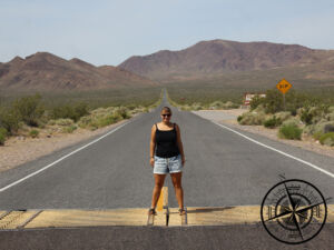 Dann ging es für uns wieder nach „Death Valley“ rein. Das Witzige daran ist, dass der Ort „Beatty“ bereits im Staat „Nevada“ liegt, aber „Death Valley“ selbst noch zu Kalifornien zählt. So gibt es auf der Straße einen kleinen Grenzübergang, welcher durch eine gelbe Linie auf dem Boden gekennzeichnet ist. Für uns ging es nun wieder ins Tal, da wir uns noch ein paar Dinge dort ansehen wollten – diesmal mit vollem Tank! Hier gibt es viel zu sehen und vieles davon befindet sich