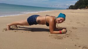 Was genau du machst, ist dir überlassen und hängt von deinen Vorlieben und Möglichkeiten vor Ort ab. Ich persönlich bin ein großer Fan von Home Workouts, die ich überall – auch im kleinsten Hotelzimmer- durchführen kann.