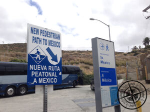Somit machten wir uns heute Vormittag mit dem Auto zur Grenze. An der Grenze befindet sich direkt ein großes Outlet-Center und daher gibt es dort unzählige, freie Parkplätze. Von dort aus folgten wir der Beschreibung unserer Gastgeberin. Es gibt nämlich einen neueren Grenzübergang direkt beim Outlet, aber der ist aktuell nur für den Weg zurück von Tijuana in die USA. Daher gingen wir den Weg über die Brücke und dann der Ausschilderung nach.