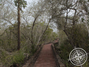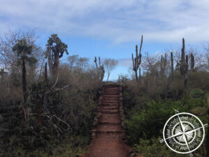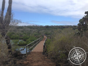 Trotz vielen Wolken ließ sich die Sonne auch mal blicken und wir entschieden uns zum „Tortuga Bay“ zu fahren. Es liegt etwas außerhalb von Puerto Ayora. Man kann dort nicht mit dem Fahrrad hinfahren und muss dies vorher abstellen. Es folgten hohe Treppenstufen bis man zum Eingangstor kommt. Danach folgt ein langer, gepflasterter Weg, der mal auf- und mal abwärts geht. Man geht mitten durch den Dschungel und links und rechts ragen Kakteen aus den Büschen hervor. Das Meeresrauschen wurde immer deutlicher und lauter und dann kamen wir an: Tortuga Bay. Ein großer, langer Strandabschnitt mit weißem, feinen Sand. Hier war kaum was los und die Wellen waren teilweise recht hoch. Aufgrund der Wellen und starken Strömung war auch die rote Fahne gehisst. Wir gingen den langen Strand entlang und man fühlte sich fast, wie an einem anderen Ort.