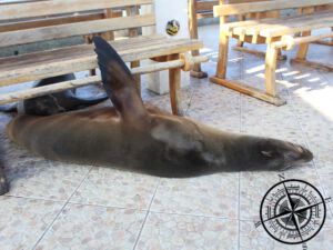 Bei unserer eigenen Routine ist uns inzwischen aufgefallen, dass auch die Stadt ihren eigenen alltäglichen Ablauf hat. So begeben sich auch viele Einheimische zur Mittagszeit zu den Almuerzo Angeboten in den Straßen, zur gleichen Zeit und nur zweimal am Tag kommen die Fähren von den anderen Inseln an und der Pier füllt sich für diese Zeit mit Touristen, Backpackern und Einheimischen. Taschen und Klamotten werden dann wie am Flughafen auf unerlaubte „Mitbringsel“ überprüft und wir sind meistens in der Nähe um den ganzen Trubel zu beobachten. Am späteren Nachmittag holen die Fischer ihre frisch gefangenen Fische hervor und es beginnt ein kleiner Fisch-Auktionsmarkt. Immer dabei ist auch eine bestimmte Seerobbe, die wohl ab und an auch etwas abzubekommen scheint. Zum frühen Abend fangen erst die meisten Souvenirläden an zu öffnen und in so gut wie jedem Restaurant gibt es eine Cocktail Happy Hour. Die Straßen und Restaurants füllen sich und neben Musik ertönt der Klang von aufgeregten Konservationen. Die Taxifahrer hupen um Aufmerksamkeit in der Straße und Kinder spielen auf den Straßen.
