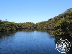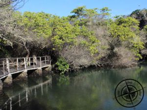 Auf Empfehlung unserer Gastgebrin wollten wir noch zu dieser Lagune. Die erreicht man einfach durch eine Nebenstraße vom Hafen aus und befindet sich somit am Stadtrand zwischen Hafen und dem Weg zu Tortuga Bay. Übersetzt heißt es „Lagune der Nymphen“, was aus einer alten Erzählung hervorgeht. Man kann hier über einen Holzsteg um die Lagune herum gehen (aber nicht komplett). Auf der einen Seite kommt das Wasser vom Meer herein, wenn aktuell Flut ist und auf der anderen Seite fließt frisches Quellwasser aus der „Las Grietas„-Quelle runter. Es ist ein sehr ruhiger und entspannter Ort und perfekt zum ausruhen oder Vögel beobachten. Im Wasser befnden sich auch kleine und große Fische, doch das Schwimmen ist hier offiziell verboten. Zudem gibt es für den Bereich Öffnungszeiten.