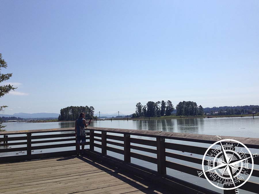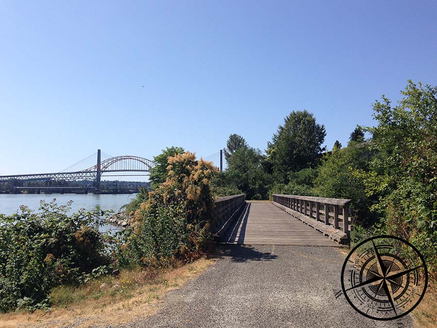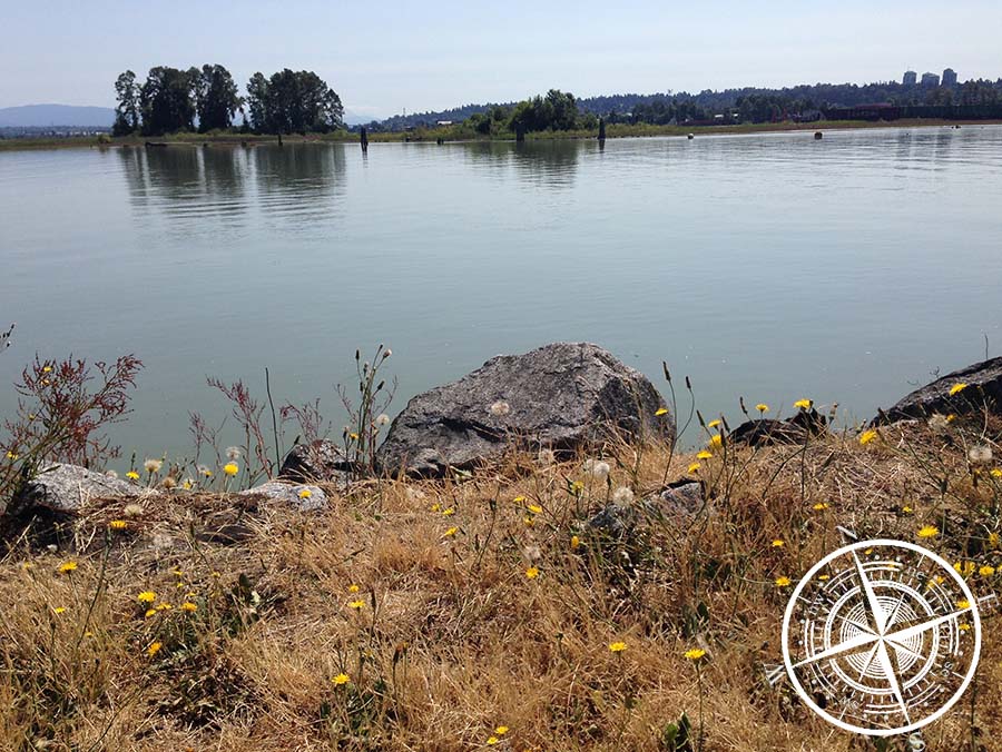 Wir gingen durch das Waldstück, was sich als schöner Weg zum Spazieren herausstellte. Es folgt dann eine kleine Kirche, ebenfalls mit einem kleinen Park und Teich und dann kommt man zu einem anderen Wohngebiet. Wir folgten der Straße und machten uns auf zum „Sapperton Landing Park“. Es ist ein 2,5km (return) Weg direkt am Wasser. Vor allem für Hundehalter ein vielgenutzter Weg, aber auch so war es wirklich sehr schön dort. Am Ende kamen wir dann auf eine große Straße und ein Mann erklärte uns dann wie wir zu unserem Ziel kommen ohne den gleichen Weg zurück zu müssen. Der Weg war aber nicht ganz ungefährlich, da es entlang der vielbefahrenen Straße war, wo es kein Fußgängerweg gab.