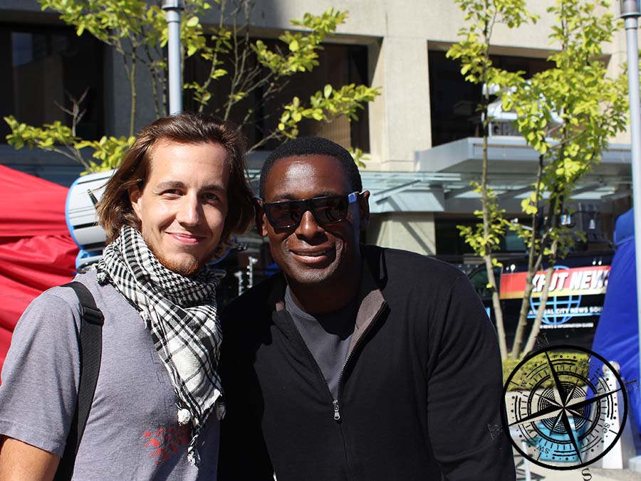 Wir schauten eine zeitlang zu und als wir eigentlich weiter wollten, fiel uns auf, dass Menschenmassen sich an einem Fleck versammelten und ein Typ Unterschriften verteilte und Selfies machte. Da wir keine Ahnung von der Serie haben, wussten wir nicht, um wen es sich hier handelt. Doch dann kam er Torben irgendwie bekannt vor. Dank Google fanden wir schnell heraus, dass dieser Mann nicht nur eine Rolle bei „Supergirl“ hat, sondern auch in der Serie „Homeland“, die Torben gerne geguckt hat. So sicherte sich Torben auch noch schnell ein Foto mit „David Harewood“ und einen Handschlag. Nett und symphatisch wirkte er auf jeden Fall! 🙂