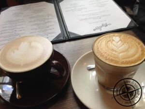 Von einer fleißigen Blogleserin haben wir den Tipp bekommen, dass es im „Café Medina“ gute Waffeln geben sollte. Das Café befindet sich in der „Richards Street“, welche von der „Robson“ abgeht. Wenn man schonmal in der Nähe ist, sollte man dort doch mal vorbeischauen. Sie warnte uns jedoch schon vor, dass das „Medina“ sehr beliebt ist und sich oft eine Schlange bildet von Leuten, die einen Platz dort haben wollen. Bei uns war die Schlange nicht allzu lange, aber wir mussten trotzdem circa 20 Minuten warten. Das „Medina“ ist wirklich sehr schön und scheint hier in Downtown sehr beliebt zu sein. Neben leckeren Waffeln, kann man hier wohl auch gut Frühstücken bzw. Brunchen und bei den Kaffees gibt es interessante Geschmacksrichtungen, wie Lavendel. Während Vivi eine heiße Schokolade bestellte, probierte Torben mal so einen Kaffee mit Lavendel aus. Der Geruch war stärker als der Geschmack, aber so ganz unser Fall war es nicht. Die Waffeln waren gut, aber auch recht klein, sodass wir direkt zwei für jeden bestellten. 😀