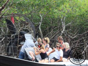 Mit uns war noch ein Pärchen mit auf dem Boot und eben der Captain. Er checkte als erstes ab, wie wir so drauf sind und ob Drehungen okay werden. Es „könnte“ sein, dass man nass wird. 🙂 Wir stimmten alle zu und los ging die Fahrt. Da so ein Airboat sehr laut ist hatten wir alle Ohrenschützer auf. Wir fuhren aus dem Einfahrtsgewässer und waren dann inmitten des Mangovenwaldes. Wow – was ein Anblick! Malerisch, magisch und abenteuerlich zu gleich. Teilweise war das Wasser so glatt, dass sich die Bäume darin spiegelten. Wirklich richtig schön! Neben dem Anblick sorgte Captain Wesley auch für Spaß, denn er gab hin und wieder richtig Gas und auf größeren Flächen gab es dann die angekündigten Drehungen. Bitte Füße anheben! 😀 Was ein Spaß!