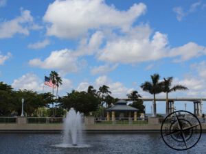 Am Montag war für uns Abreisetag in Fort Myers und wir packten somit nach dem gemütlichen Frühstück unser Gepäck. Bevor wir aber die Stadt verließen, legten wir noch einen Halt an der Wasserfront ein. Bisher hatten wir von Fort Myers nicht viel gesehen, da wir ja den Tag zuvor meistens am Strand waren. Wir fanden einen Parkplatz, wo man eigentlich an der Parkuhr etwas einwerfen muss. Doch unser Plan war es nur eben ein paar Fotos zu machen und dann die Fahrt fortzusetzen.