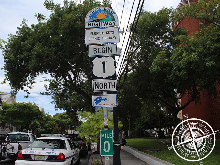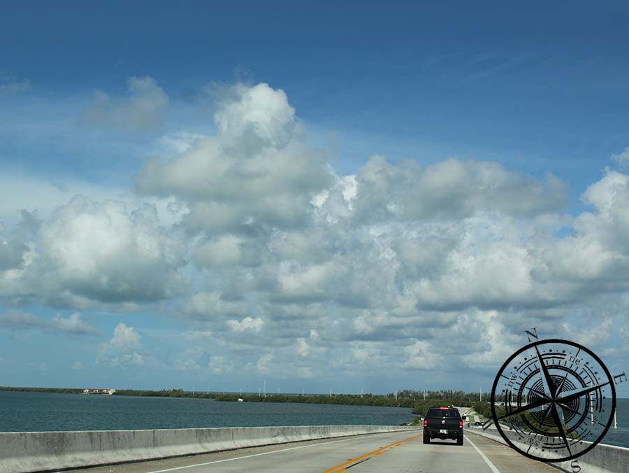 So fuhren wir also am Dienstag mit unserem Mietwagen bei recht schönem Wetter die Keys runter nach Key West. Die Fahrt dauert insgesamt etwas über drei Stunden, wenn man ohne viel Verkehr durch kommt. Sobald man auf den Keys ist, sieht man auf der linken und rechten Seite die Ausläufe der Everglades und somit viele Mangrovenbäume und theoretisch auch Alligatoren. Ebenso wird man auch auf einigen Schildern auf Hirsche / Rehe aufmerksam gemacht, die hier auf den Keys rar sind, aber beschützt werden. Zudem sieht man auch mal am Straßenrand grüne oder orangene Leguane.