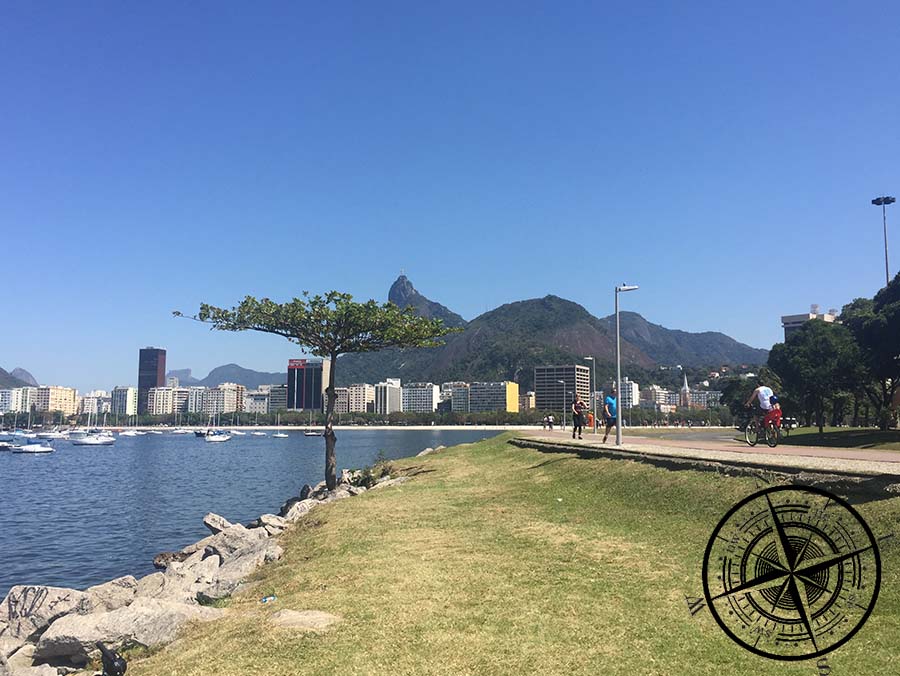 Die Lagune „Lagoa Rodrigo de Freitas“ kann man in beide Richtungen beliebig umrunden und umfasst ca. 8km. Wir entschieden uns links herum zu starten und legten kurz nach Beginn einen Halt ein, denn hier befand sich eine Steg zum verweilen mit Blick auf die Christusstatue. Bisher sind wir ja auch eher ununterbrochen gefahren, weshalb so eine Pause nicht schaden kann. Unser Wasser war leider schon leer, weshalb wir gleich nach einer Erfrischung Ausschau halten wollten. Die Lagune ist der letzte Halt für den Ausflug und sofern wir diese umrundet haben, sollte es zurück zur Unterkunft gehen.