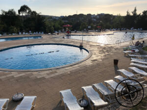 Dann erledigten wir noch restliche Bersorgungen und setzten uns dann nach einer Runde im Pool neben unseren Camper und feuerten den Grill an. Dies bedurfte erst noch etwas Einspielung, gelang dann aber gut. Währenddessen haben wir auch viele VLOG Videos aufgenommen, welche dann noch auf unserem YouTube Kanal veröffentlicht werden. Zum Abend gab es also noch ein paar Bratwürstchen mit Speck und wir überlegten uns Aktivitäten und Orte, welche wir am nächsten Tag besuchen wollten. Dann kam die Müdigkeit vom langen Tag und wir packten alles zusammen um wieder fit für den zweiten Tag zu sein!
