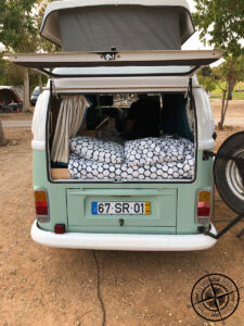 Nachdem wir alle Details klären konnten (es gab erst noch Unklarheiten bzgl. der Ausstattung des Campers), überreichte Sie uns den Autoschlüssel und überließ uns der Freiheit Portugals. WIr nutzten die Chance direkt für einen Einkauf im nahegelegenen lokalen Supermarkt. Ein paar Lebensmittel, einen großen Wasserkanister und paar andere Haushaltsartikel. Nun kam die Bewährungsprobe für den Camper…wie lässt sich so ein älteres Modell ohne Servolenkung und dem heute so üblichen Ausstattungen fahren. – Gewöhnungsbedürftig um es kurz zu halten.