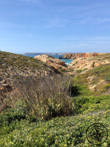 Wir bogen dann mehr in Richtung Land ab und die Küste verschwand aus dem Blickfeld. Unser Weg führte uns dabei erneut an „Vila do Bispo“ vorbei, den wir erst gestern auf dem Weg zum Surfkurs passierten. Diesmal aber Richtung Süden und somit auch zum südlichten Punkt Portugals. Wir konnten inzwischen ebenfalls bestätigen, dass die Landschaft sich mehr zum Nationalpark gewandelt hatte. Die Südwestseite Portugals ist ein Nationalpark und bietet somit viele wunderbare versteckte ruhige und sehenswürdige Orte und Aussichtspunkte. (Wir haben während unserer einen Woche nur einen geringen Bruchteil davon gesehen.)