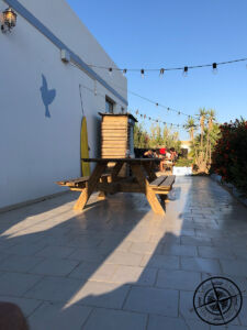 Somit kam bei dem sportlichen Einsatz auch der Hunger wieder auf und auch wenn wir schon zu Mittag gegessen hatten, wollte ich noch zu einem bestimmten Restaurant hin. Es war der Treffpunkt mit „Salt & Silver“ sowie „SOL BEER“ am nächsten Tag. Das Restaurant „Three Little Birds“ im Herzen von Sagres, wo uns die Speisekarte online bereits zusagte. Da unser geplanter Campingplatz etwas außerhalb lag, wollten wir dort nicht vorher hin. Zudem hatte ich aus Deutschland bereits angefragt, ob reserviert werden müsste und als Antwort kam ein: „Hier ist immer Platz“.