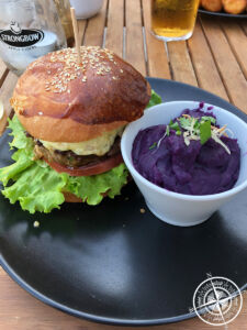 Als der Burger dann kam (Patrick hatte den auch bestellt), waren wir direkt in der Klasse von Qualität und Ambiente vollständig überzeugt. Der Burger war erstklassig und zieht bei mir deutlich auf Rang 2! Lediglich der Burger aus Neuseeland war noch ein kleines bisschen besonderer. Was aber definitiv nicht heißt, dass es etwas an diesem hier auszusetzen gab. Er war perfekt!