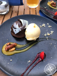 Die Karte klang köstlich und wir fanden beide direkt etwas zu Essen. Auch ein kleiner Cocktail durfte bei der Atmosphäre nicht fehlen. Eine der Servicekraft kam aus der Schweiz und hatte uns sofort als Deutsche entlarft. Sie ist nach Portugal ausgewandert und lebt hier ihren Traum in der Sonne. Auch wir hatten bei dem leckeren Essen und der guten Stimmung kein Zeitgefühl. So verging die Zeit und nach einem letzten Glas frisch gepresstem Orangensaft entschieden wir uns für die Weiterfahrt.