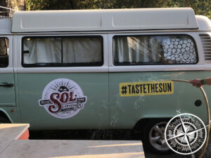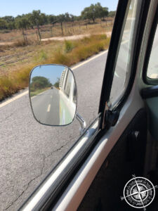 Die Fahrt verblieb ruhig und auch an diesem Tag hatten wir super Wetter und lauschten bei Gelegenheit dem portugiesischen Klängen im Radio. Auf einer Landstraße sahen wir dann in der Ferne schon zwei Menschen mit gelber Weste auf einer Kreuzung stehen. Direkt danach erkannten wir das Polizeiauto an der Seite. Das unser Bulli etwas auffällig wirkt, war uns klar und wir somit auch von der Polizeitkontrolle nicht überrascht. Der eine Polizist hatte uns aus der Ferne bereits gesehen und stellte sich schon auf unsere Fahrbahn. Mit einigen Gesten wies er uns daraufhin an den Seitenstreifen zu fahren.