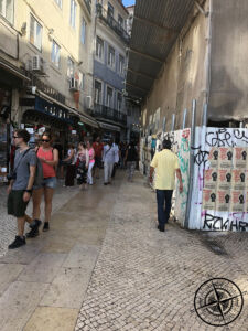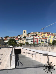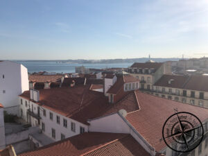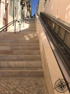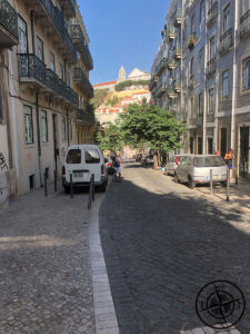 Die Wartezeit im Hard Rock Cafe nutzten wir, um weitere Ziele für unsere kompakte Sightseeing-Tour duch Lissabon festzulegen. Patrick erzählte von einer Burg und einer Aussichtsmöglichkeit, von wo aus man einen perfekten Blick auf die Stadt haben soll. Das klang nach einem perfekten nächsten Ziel und gleichzeitigem Verdauungspaziergang. Somit schlenderten wir querweg ein durch die Gassen Lissabons, bis wir an einer der ersten steilen Treppen ankamen. Von hier aus war die Burg bereits ausgeschildert, was uns zunächst den Weg einfacher machte. Auf halben Weg gab es dann aber keine Ausschilderung mehr und wir folgten einfach den anderen Menschengruppen.