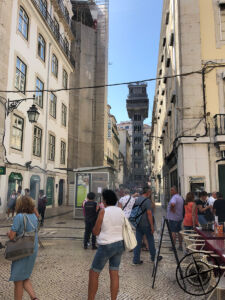 Dieser brachte einen hinunter zu einem Supermarkt und einem anderen Zugang zur Innenstadt. Wir nutzten die relativ überschaubare Menschenmenge um ein paar Fotos und Videos von der Stadt zu machen und holten uns dann, unten angekommen noch einen frisch gepressten Orangensaft aus dem Supermarkt. Wenn uns eins klar geworden ist in Portugal, neben der genialen Südküste gibt es hier echt guten Orangensaft!