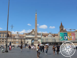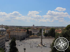 Von daher machten wir uns wieder zurück zur „Via del Corso“ und folgten der Straße gen Norden. Auf dem Weg lockte uns ein Laden, um für ein erfrischenden Milchshake anzuhalten. Bei einem Preis von 3,50 € war dies auch gut zu verkraften. Nachdem wir unseren Weg erfrischt fortsetzten, erreichten wir auch kurz darauf den „Piazza del Popolo“, welches sich als weiterer imposanter Vorplatz entpuppte. Dieser Platz war unser Ziel und Grenze für den heutigen Tag und wir stiegen die Treppen hinauf zur „Terrazza del Pincio“. Von dort oben hatte man einen herrlichen Blick auf den Platz und sogar hinüber zum Vatikan. Auf einer Bank im Schatten legten wir eine Pause ein und überlegten uns den weiteren Weg für den Tag.