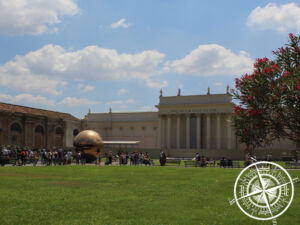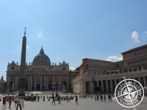 Direkt nach dem Ausgang konnte man in einem Shop auch Postkarten kaufen und diese dann quasi aus dem Vatikanstaat verschicken lassen. Da die Preise nicht merkbar teurer waren als sonst in Rom, kauften wir uns welche, schrieben die direkt und gaben sie im eigenen Postkasten des Vatikans ab. Danach schlenderten wir über den Petersplatz (welcher übrigens nicht rund, sondern elipsenförmig ist) und machten einige Fotos und Videos aus den verschiedensten Perspektiven. Die zwei Brunnen auf dem Petersplatz sorgten beim annähern durch den Wind für eine willkommene Abkühlung. Dass zu bestimmten Veranstaltungen der gesamte Petersplatz voll mit Besuchern ist, war eine beeindruckende Vorstellung.