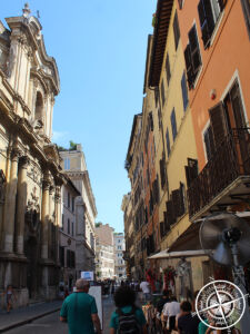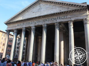 Nebenan befindet sich die Kirche „Sant´Agnese in Agone“, welche von außen größer scheint, als es der Platz von Innen wirklich ist. Wir verweilten etwas auf dem „Piazza Navona“ und schauten uns alles in Ruhe an, bevor wir unseren Weg fortsetzten. Nur 2-3 Gassen weiter gelangt man zum „Pantheon“, ein etwa um 118 bis 125 n. Chr. erbauter Tempel mit Kuppel & Renaissancegräbern. Darunter befindet sich auch Raffaels Grab. Besonders beeindruckend ist die riesige Kuppel, welche ca. 1700 Jahre als gößte Kuppel der Welt galt und die ca. 9 Meter breite runde Öffnung in der Mitte der Kuppel. Dies ist neben dem Eingangstor die einzige Lichtquelle. Obwohl man laut Recherchen hierfür Eintritt bezahlen muss, konnten wir einfach so hinein, sofern Schultern und Knie bedeckt sind. Aufgrund unseres Vatikan Besuches war dies noch der Fall. Von Innen war dies wirklich sehr beeindruckend.