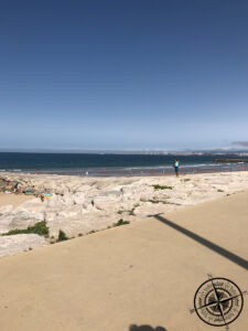 Die Entdeckung umfasste einen Zeitraum von 9:30 Uhr bis 13:30 Uhr, wobei wir um 09:30 Uhr an einem Treffpunkt in Lissabon abgeholt werden und um ca. 13:30 Uhr wieder zurück an diesem Treffpunkt sein sollten. Der Surfkurs würde dann selbst ca. 2 Stunden dauern. Somit standen wir zwar etwas eher auf als die Tage zuvor, doch konnten noch entspannt frühstücken, bevor wir uns mittels UBER auf den Weg zum Treffpunkt machten. Gegen 09:30 Uhr stieß noch eine andere Teilnehmerin zu uns, da für die Entdeckungen z.B. eine bestimmte Anzahl an Personen teilnehmen kann. Laut den Airbnb Informationen waren es für den Kurs nur wir vier. Dann kam auch schon Rui mit seinem Van an und sammelte uns ein.