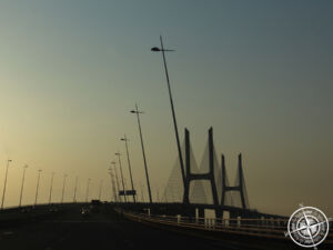 Wir wählten den frühen Start des Roadtrip zum einen für die ruhigere Straßenlage und zum anderen um mehr vom Aufenthalt im Süden zu haben. Nach ca. 30 Minuten und der erfolgreichen Überquerung der Brücke „Vasco da Gama“ hieß es laut Navi erstmal etliche Kilometer geradeaus. Das nutzen Vivi und Laura um etwas Schlaf nachzuholen, denn Torben war der Fahrer für den Roadtrip.