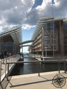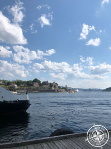 Nachdem wir in Aker Brygge ankamen, schlenderten wir erstmal etwas an der Promenade entlang und schauten uns die Vielzahl der Restaurants an. Vielleicht wäre da ja auch etwas für uns später dabei. Doch vor allem am Anfang schien es sich eher um gehobene skandinavische und französische Küche zu handeln, welche uns nicht ganz zusagte. Danach setzten wir zunächst unseren Weg fort und kamen vorbei am Yachthafen, welcher sich am südlichen Ende des Stadtteils befand. Insgesamt hatten die Gebäude und der Aufbau der Promenade einen sehr modernen Stil, welches nicht direkt an das typische skandinavische Häuschen erinnert. Uns gefiel es trotzdem, da es offen und hell wirkte und mit vielen Sitzmöglichkeiten auch zum Verweilen mit Blick auf den Fjord einlud.