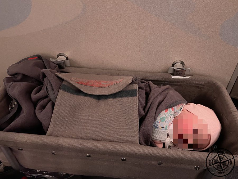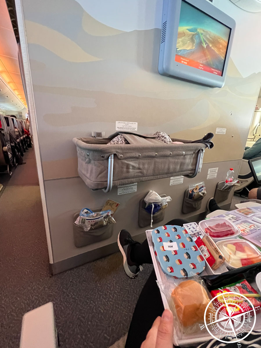 Auch hier das gleiche Prozedere beim Start und auch hier gab es für die Kinder wieder eine Kleinigkeit. Dass das wieder das Gleiche war, störte keiner der Kinder. Auch in diesem Flug hatten wir wieder ein Bassinet, aber da es hier ein paar mehr leichte Turbulenzen gab und somit das Anschnallzeichen an war, musste das Baby bei Vivi auf dem Schoß sein und daher haben wir es bei dem Flug kaum genutzt. So bekam aber Vivi dann auch ein bisschen Schlaf mit Baby im Arm.