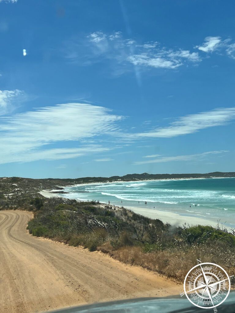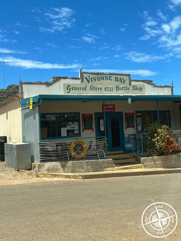 Daher fuhren wir an dieser Kreuzung, sowie auch bei „Little Sahara“ (bekannt zum „Sandboarden“) vorbei und machten aber einen kleinen Stop am „Vivonne Bay“ – einem der schönsten Strände Australiens. Da es allerdings ziemlich windig war, stieg nur Torben aus um kurz ein paar Aufnahmen zu machen. Der Strand im Süden der Insel ist wohl aber auf jeden Fall ein bekannter Surfspot. 😊 Torben war auch kurz mit den Füßen drin und er meinte, dass es recht kalt war. Im „Vivonne Bay General Store“ kaufte Torben uns noch ein kühles Getränk und für den Großen ein Quetschie. Es war schon ganz schön warm hier auf der Insel!