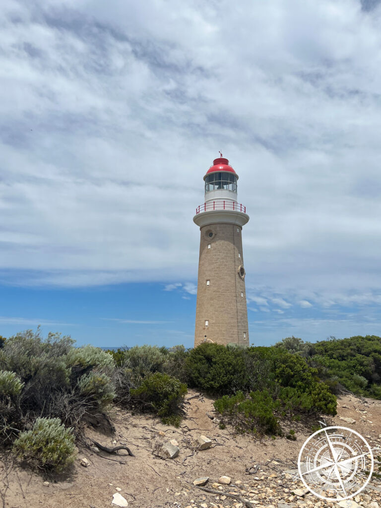 Als wir unseren Parkbeitrag von 12,50 AU$ (= ca. 8,10 € / Kinder erst ab 4 Jahren) bezahlt hatten, fuhren wir auf der „Cape Du Couedic Rd“ süd-östlich weiter. Kurzer Fotostop am „Bunker Hill Lookout“ und dann weiter bis zum Leuchtturm „Cape Du Couedic“ – einem wirklich sehr schönen Leuchtturm.