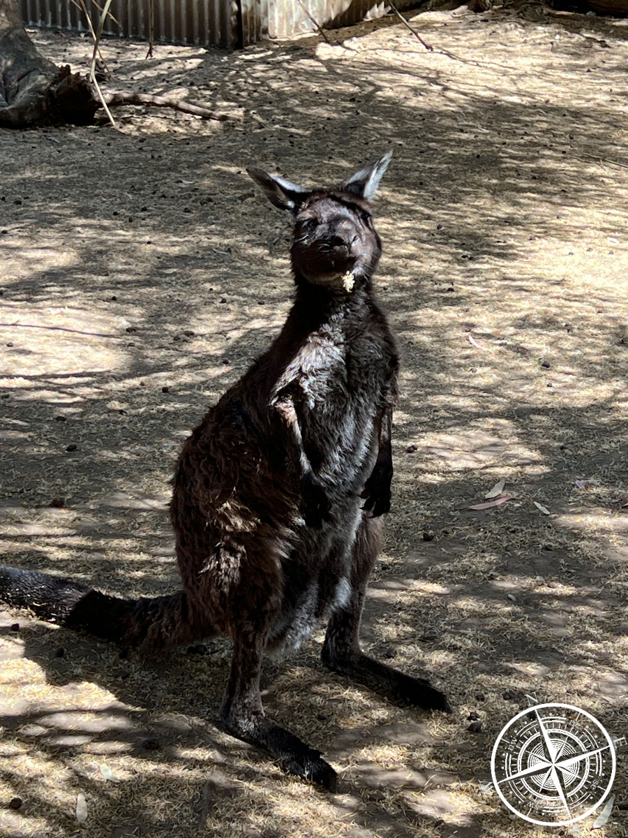 An der Kreuzung folgten wir dann dem „Playford Hwy“ in Richtung Osten und machten in „Parndana“ beim „Kangaroo Island Wildlife Park“ einen Halt. Am Straßenrand sahen wir immer mal tote Tiere und wir gaben es auf, dass wir am heutigen Tag noch Tiere, wie Kängurus oder Koalas wild sehen auf. Durch den „Black Summer“ aber auch durch Covid hat die beliebte und eigentlich immer gut besuchte Insel viele Einbüsungen machen müssen und sie sind auf Unterstützung angewiesen. Die kann z.B. auch durch einen Eintritt in so einen „Park“ möglich sein.
