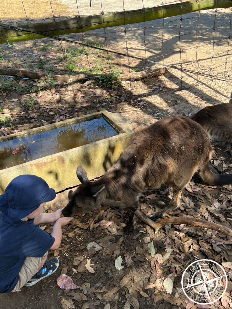 Dann folgte das Kängurugehege, das betretbar war. Vorsichtig näherten wir uns zwei Kängurus mit einem Kleinen, die aber scheinbar sehr hungrig waren. Torben zeigte Ry wie man sie füttert und machte es mit ihm zusammen. Er war echt sooo mutig und war dann voller Vorfreude, aber echt ganz vorsichtig! Das hat ihm so viel Freude gemacht und war total schön anzusehen.