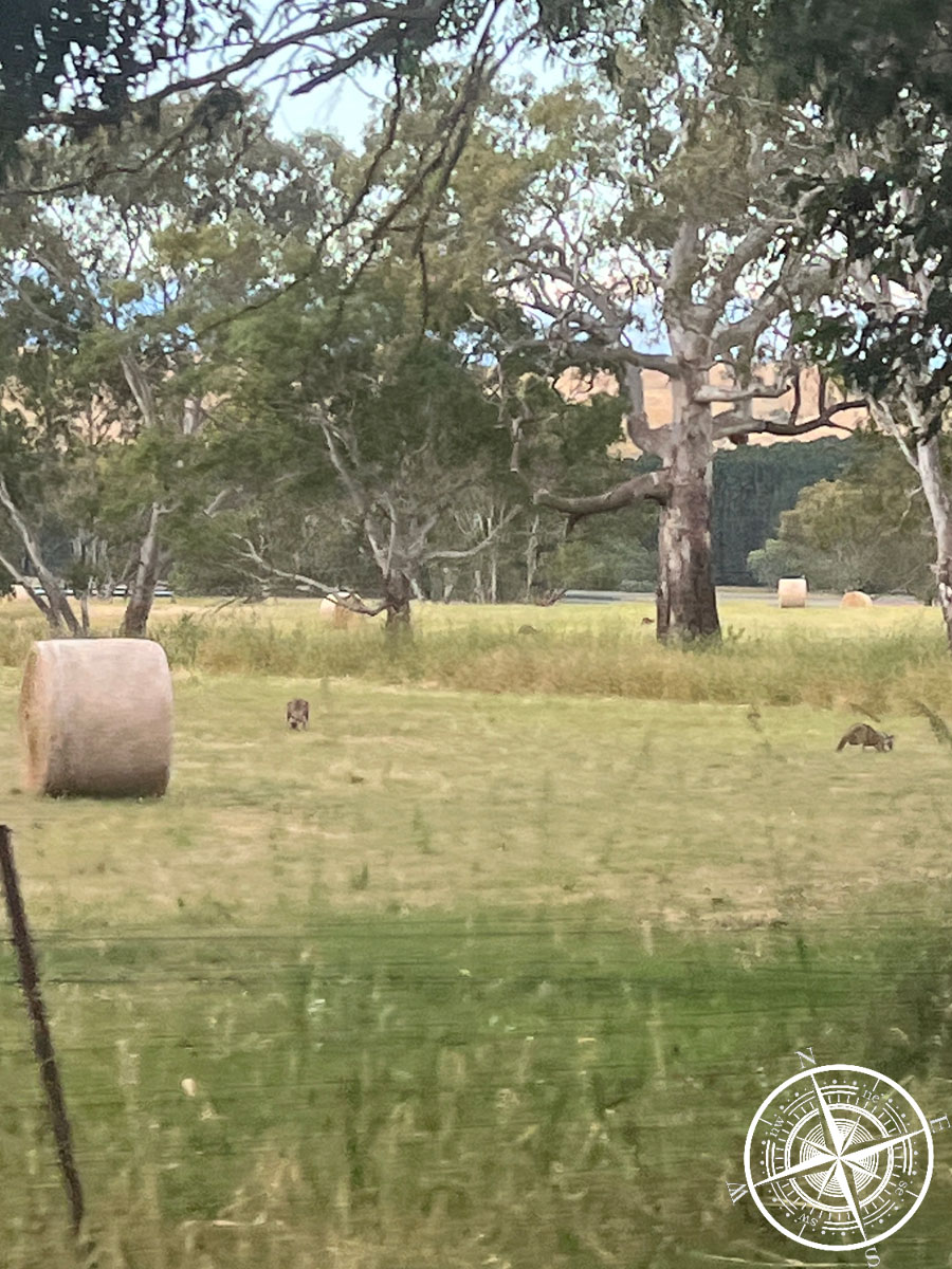 Wir stiegen in unser eingestaubtes Auto ein und fuhren wieder zurück nach Adelaide. Kaum unterwegs, sahen wir schon die ersten Kängurus auf den Feldern recht nah am Straßenrand. Das gibt’s doch nicht! Zum Glück hat auch der Große sie beim Vorbeifahren gesehen. Es waren echt nicht wenige! Ist ja auch klar, denn die Sonne ging langsam unter und es war nun auch schon etwas abgekühlt. Da ist es ja verständlich, dass die Tiere dann nun rauskommen. Wir haben uns einfach an dem Fakt gefreut. 😊