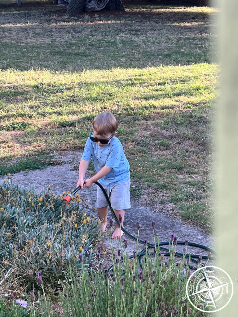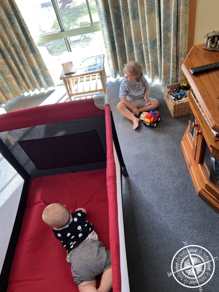 Wir haben uns also erstmal in unserem Cottage eingerichtet. Frisch gebackenes Brot, Eier von den Hühnern und ein paar andere Dinge waren fürs Frühstück bereitgestellt. Ebenso gab es ein Reisebett für die Kleine und eine Kiste voller Spielzeug und Bücher für die Kinder. Das fand unser Sohn total super und der war direkt beschäftigt. 😊